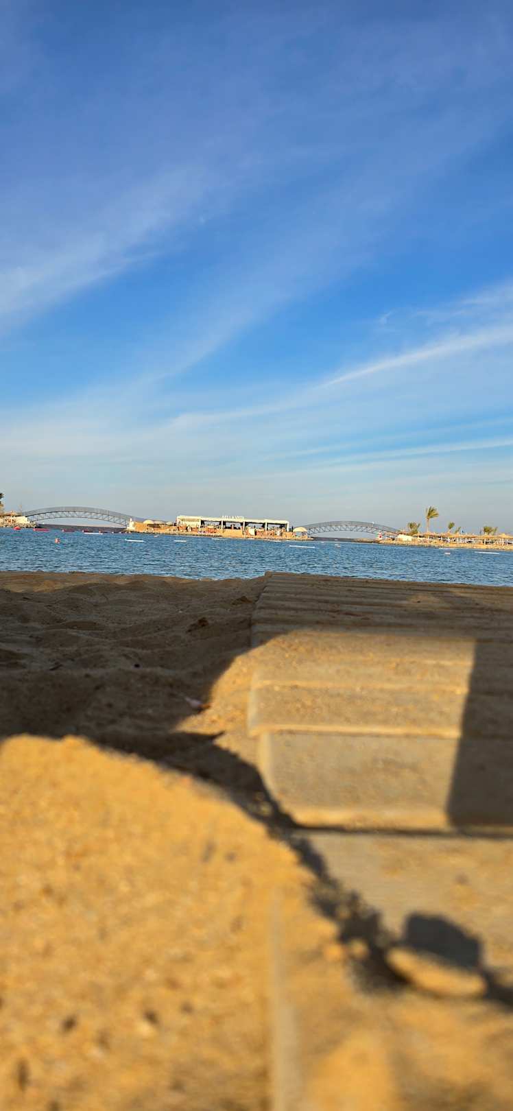 Aussicht vom Strand Richtung Bella Vista Bar. Holz weg für Rollstühle bis vor. Sind 4 Plätze extra mit Rollstuhl Symbol gekennzeichneten liege Plätze