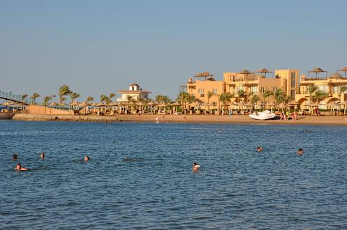 Die Hotelgebäude direkt am Meer