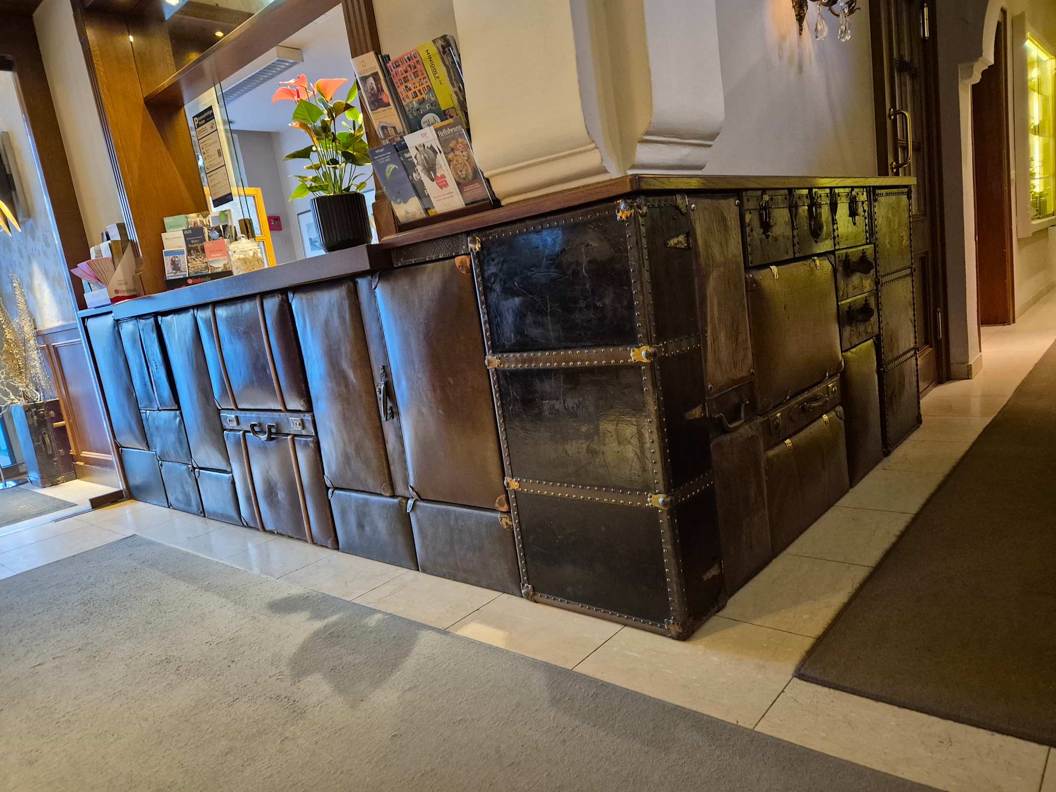 Alte Koffer an der Rezeption verbaut. SO eine tolle Idee