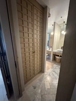Ankleidebereich mit Schränken auf beiden Seiten.