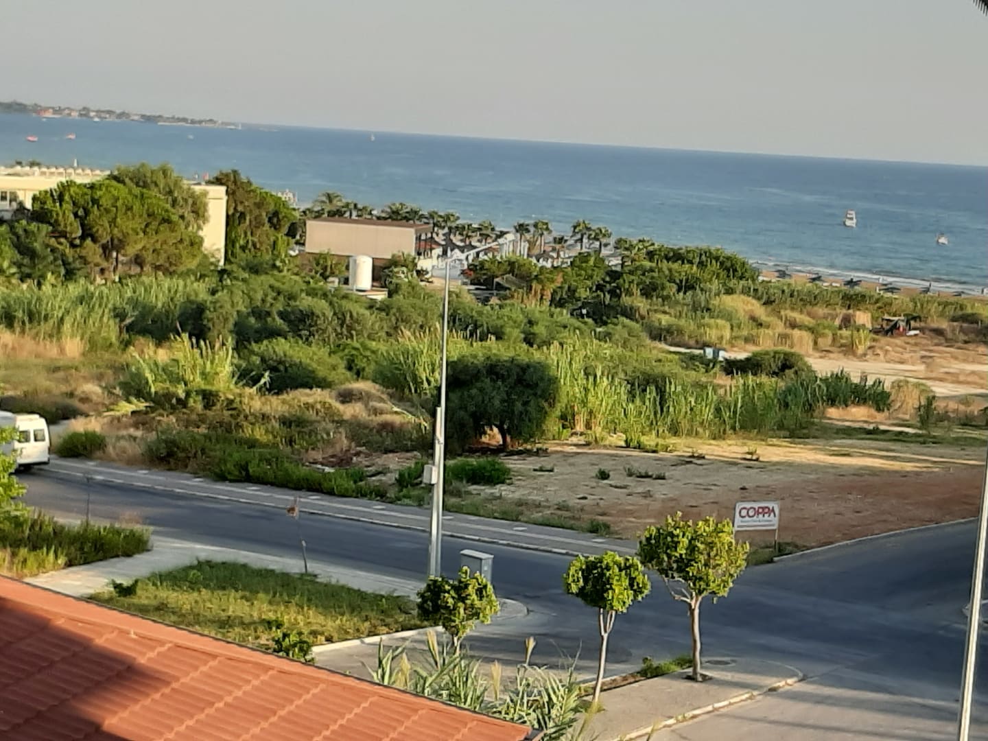 Seitlicher Meerblick vom Balkon ,rechts die Straße runter der Weg zum Strand