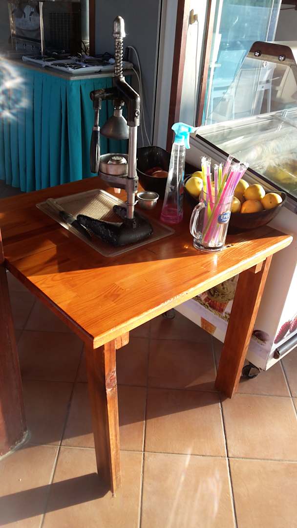 Hier ins Desinfektionsmittel direkt bei der Saftpresse.