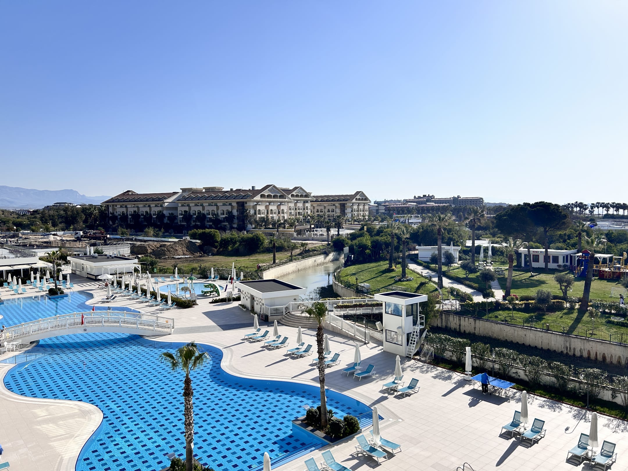 Blick zum Crystal Palace Luxury Resort und der Baustelle vom Wasserpark Novum.