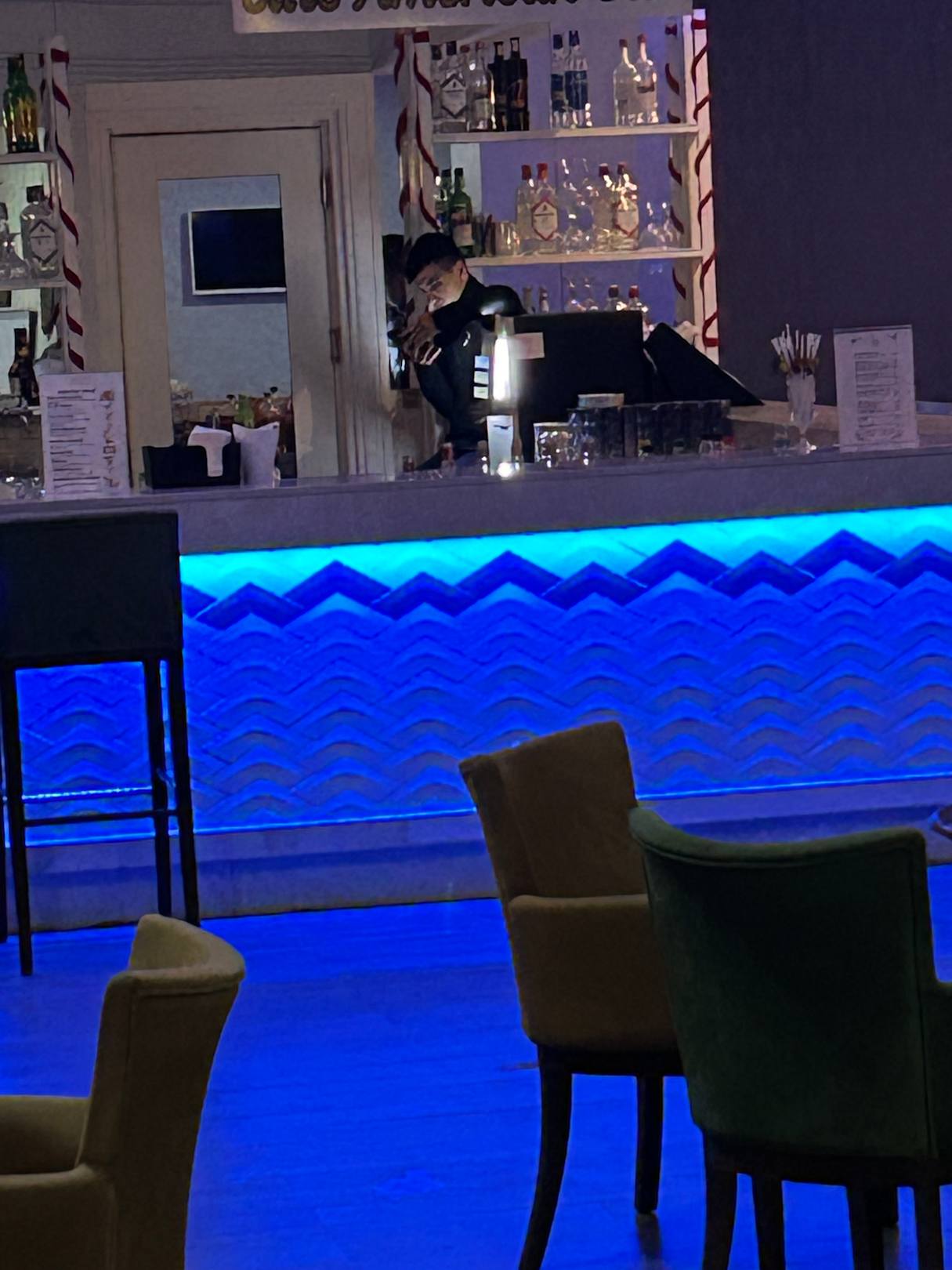 Keller hat auf der Theke gesessen und mit dem Handy gespielt anstatt die Gäste zu bedienen