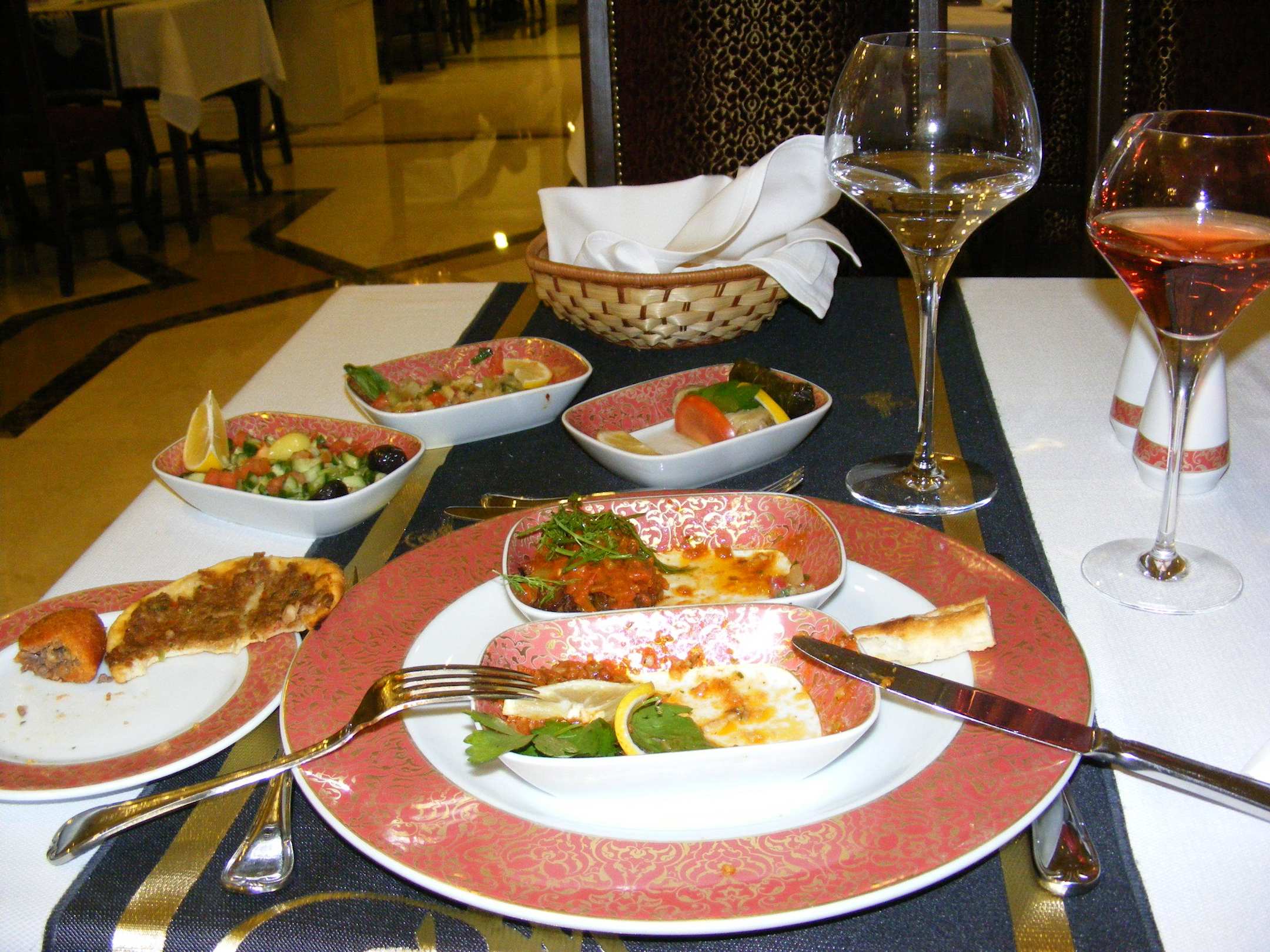 Türkisches Restaurantdie reichlichen Vorspeisen(reste)