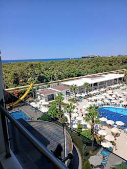 Zum Strand 10min zu Fuß, durch Tunnel direkt hinter den großen Hotelrutschen. Auch dort all inklusive Strandbar mit Essen. Ebenso ist am Strand ein Kinderpool überdacht mit Spielplatz. Daneben kleine Fußballwiese