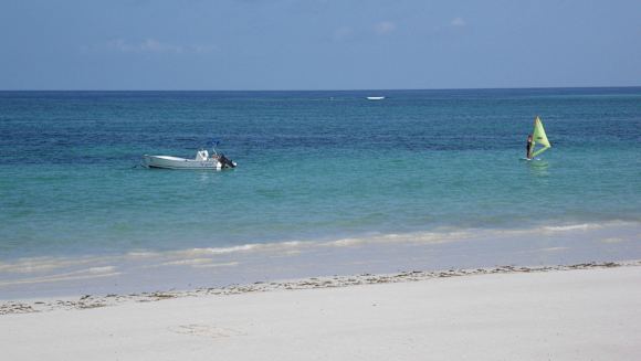 Schneeweißer sauberer Strand vor dem Hotel