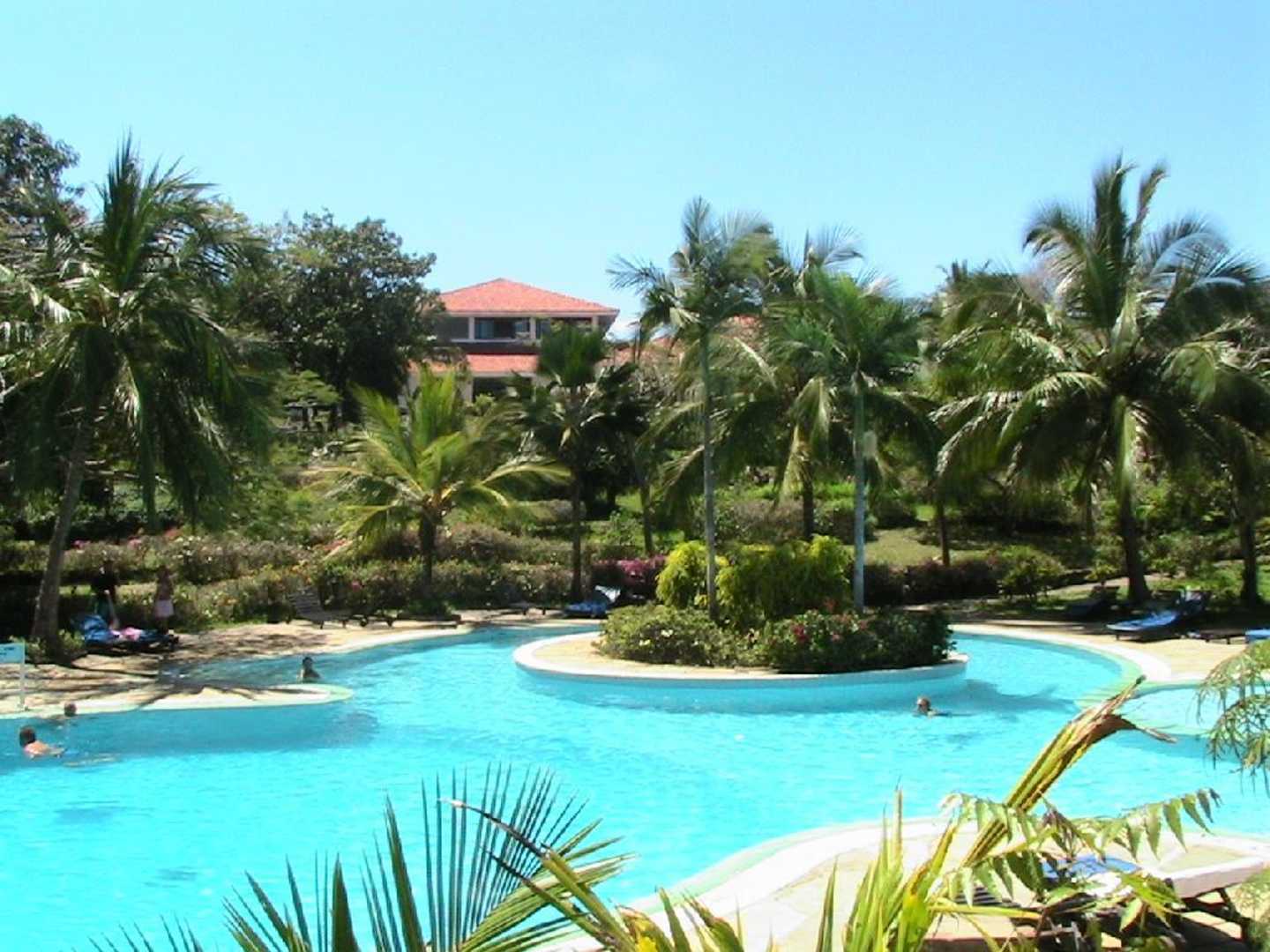 Diani sea resort Kenia Poolanlage vom Hauptgebäude aus gesehen