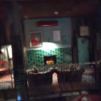 Kamin im Obergeschoss der Lobby