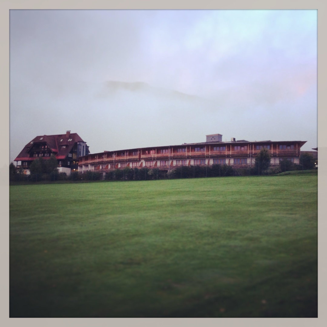 Das Hotel in früher Morgenstund vom Golfplatz aus!