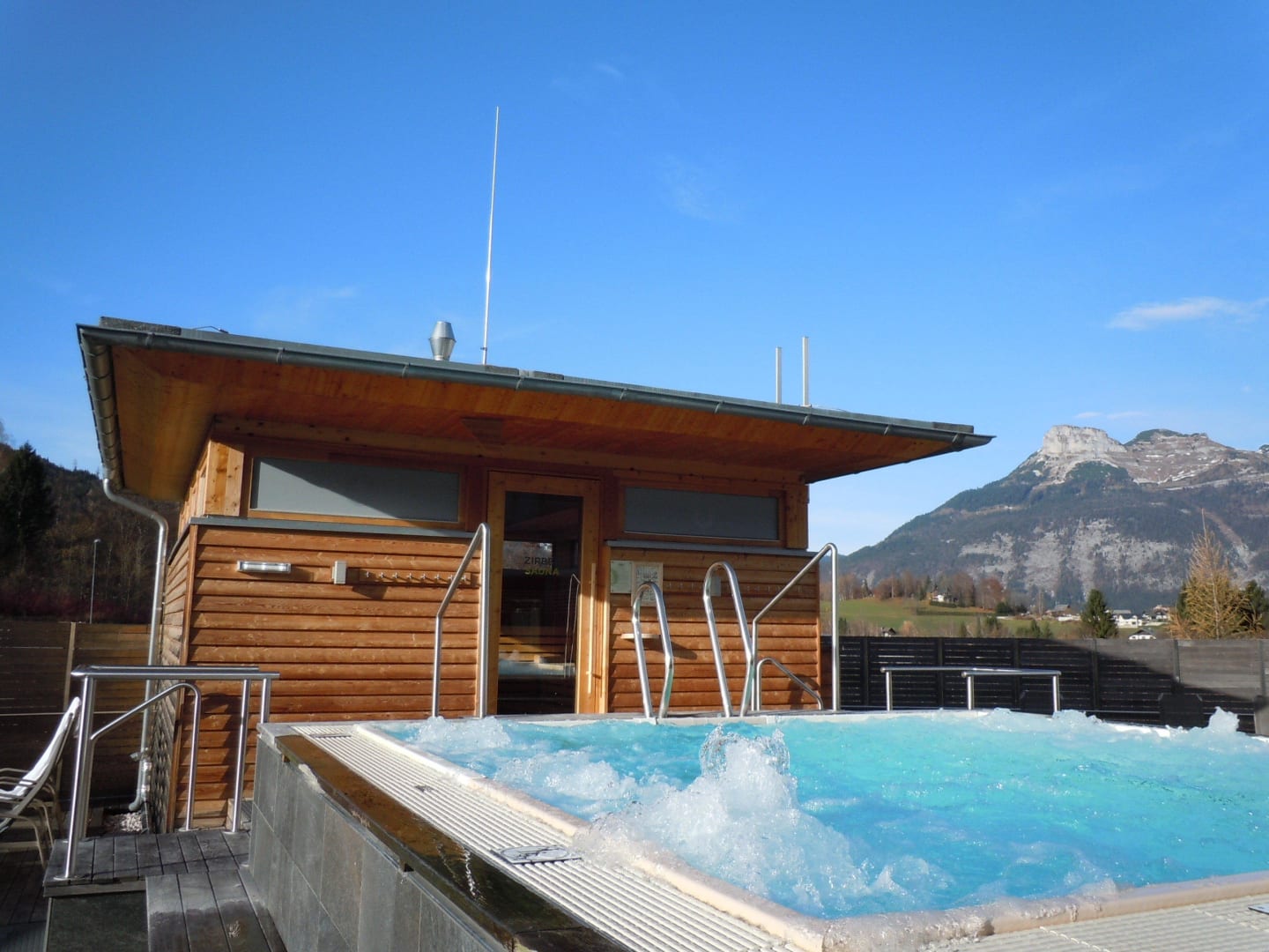 Zirbensauna und Whirlpool mit Blick zum Loser