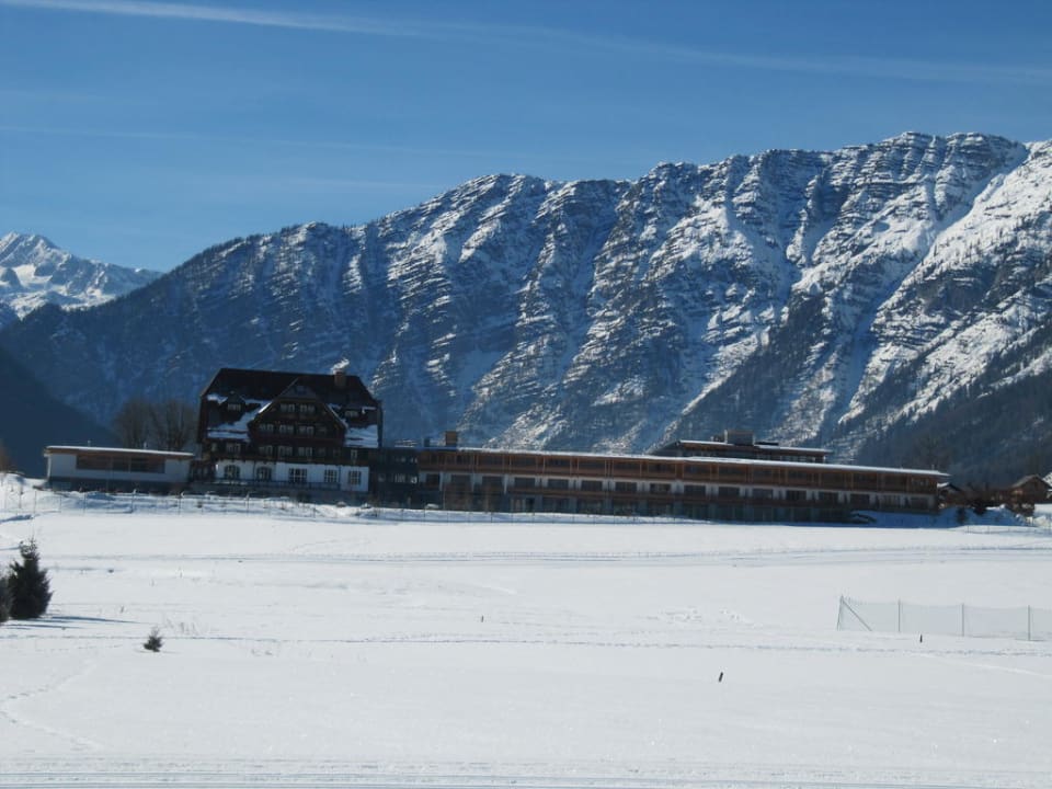 Hotel mit Langlaufoipe davor