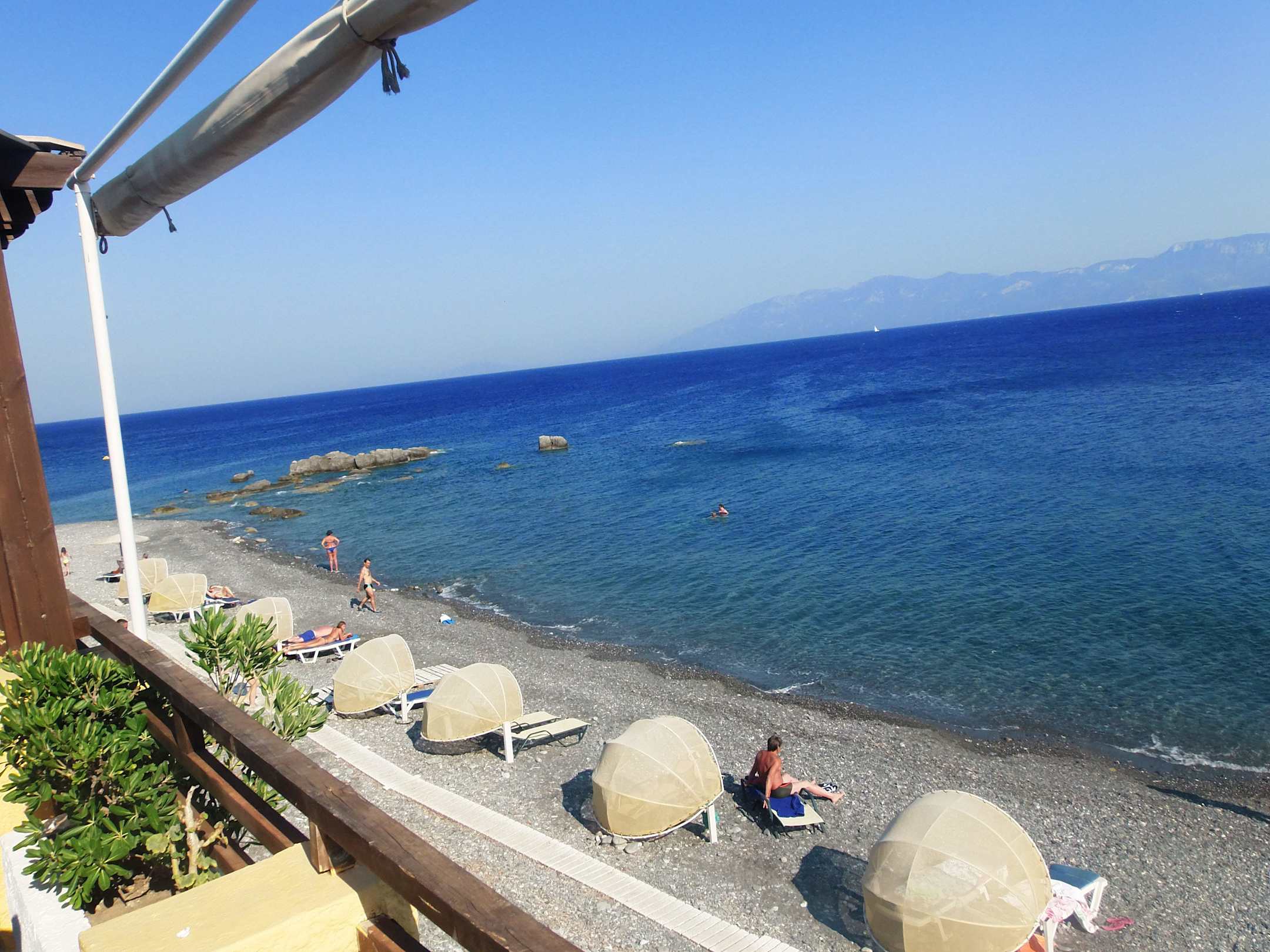 Kiesstrand mit nur wenigen Liegen!