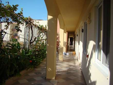 Zugang zu den AppartementsDas Putzzeug liegt auf dem Boden.