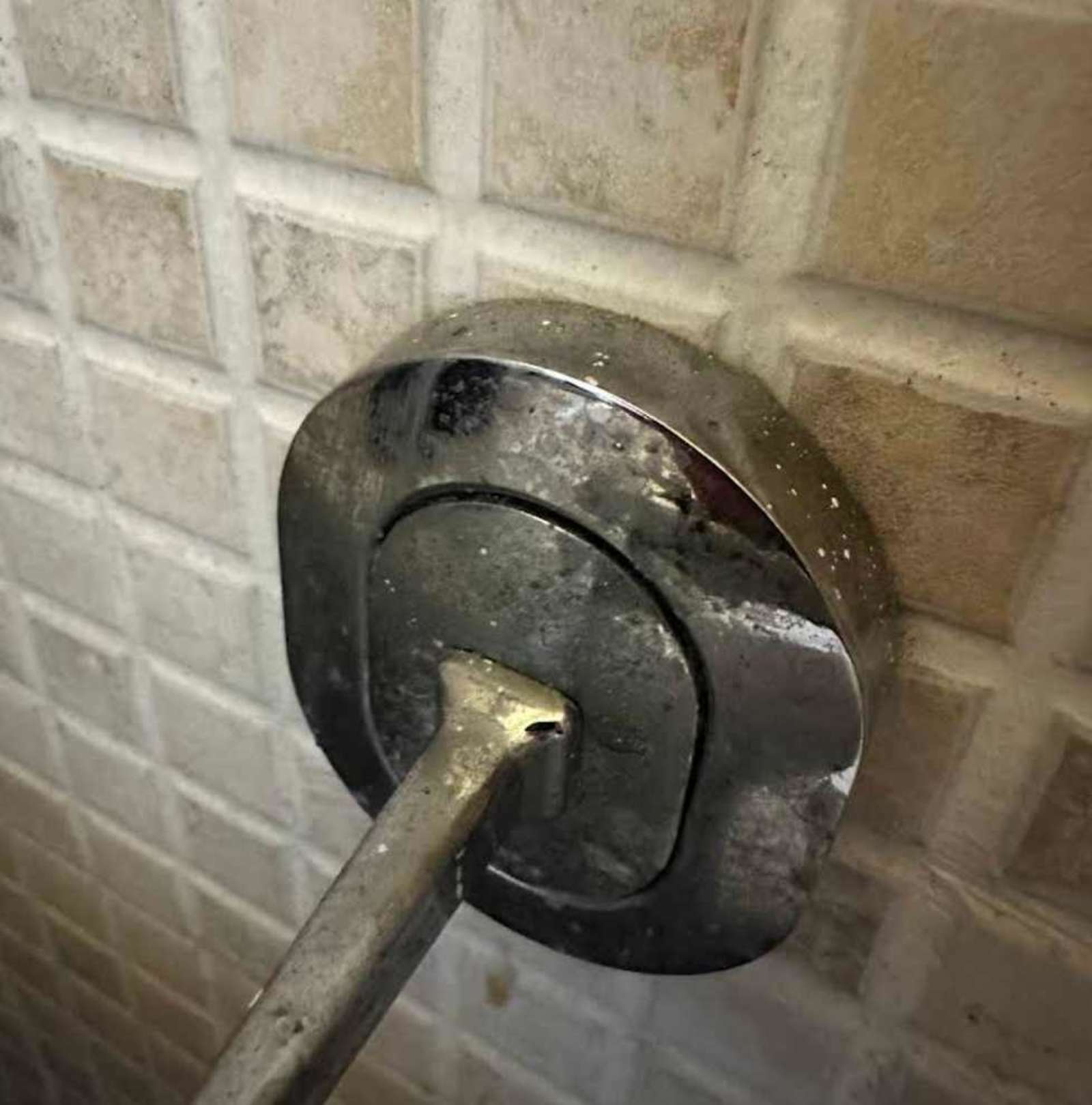 Armatur mit Zahnpastaflecken und Rost