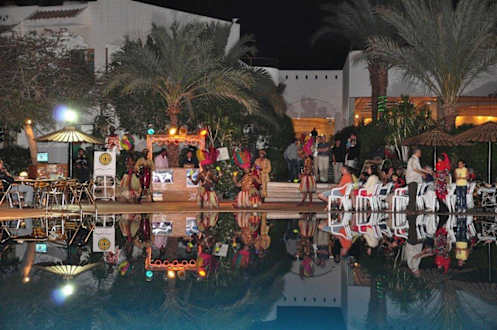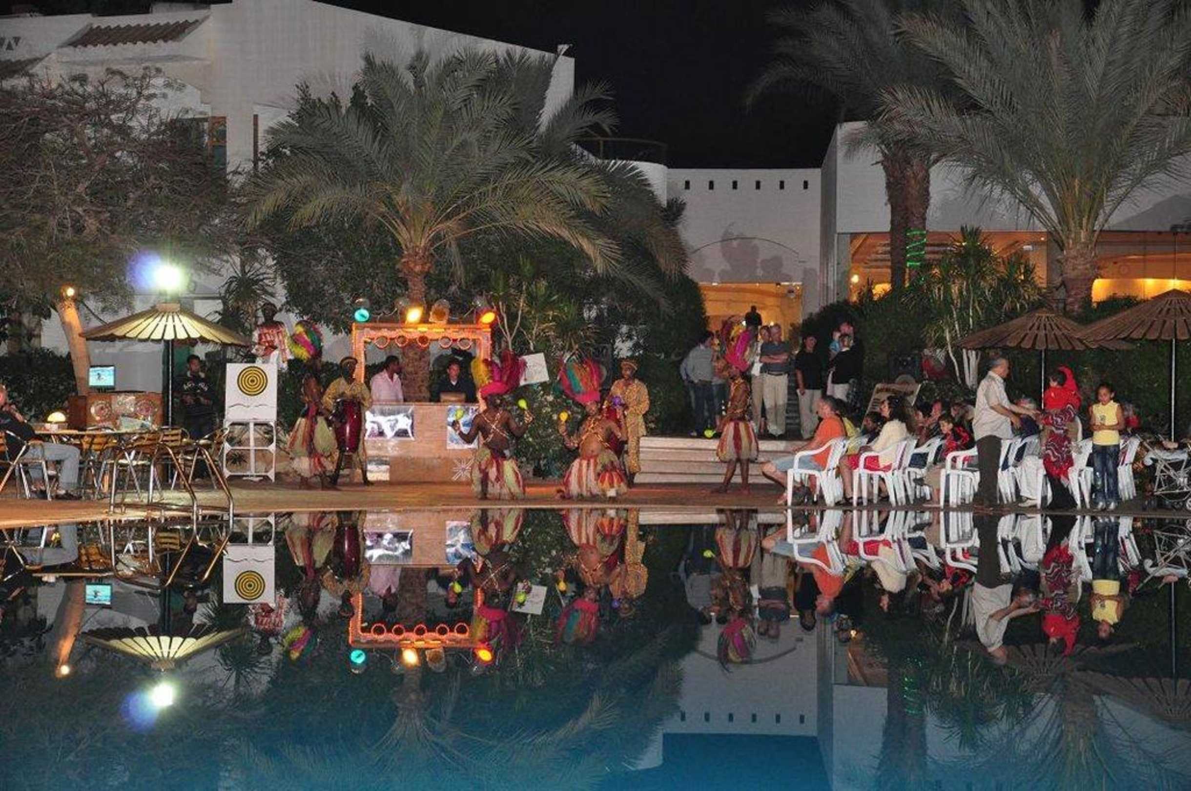 Entertainment bij Zwembad. Fakiershow, buikdans, afrikaanse dans.