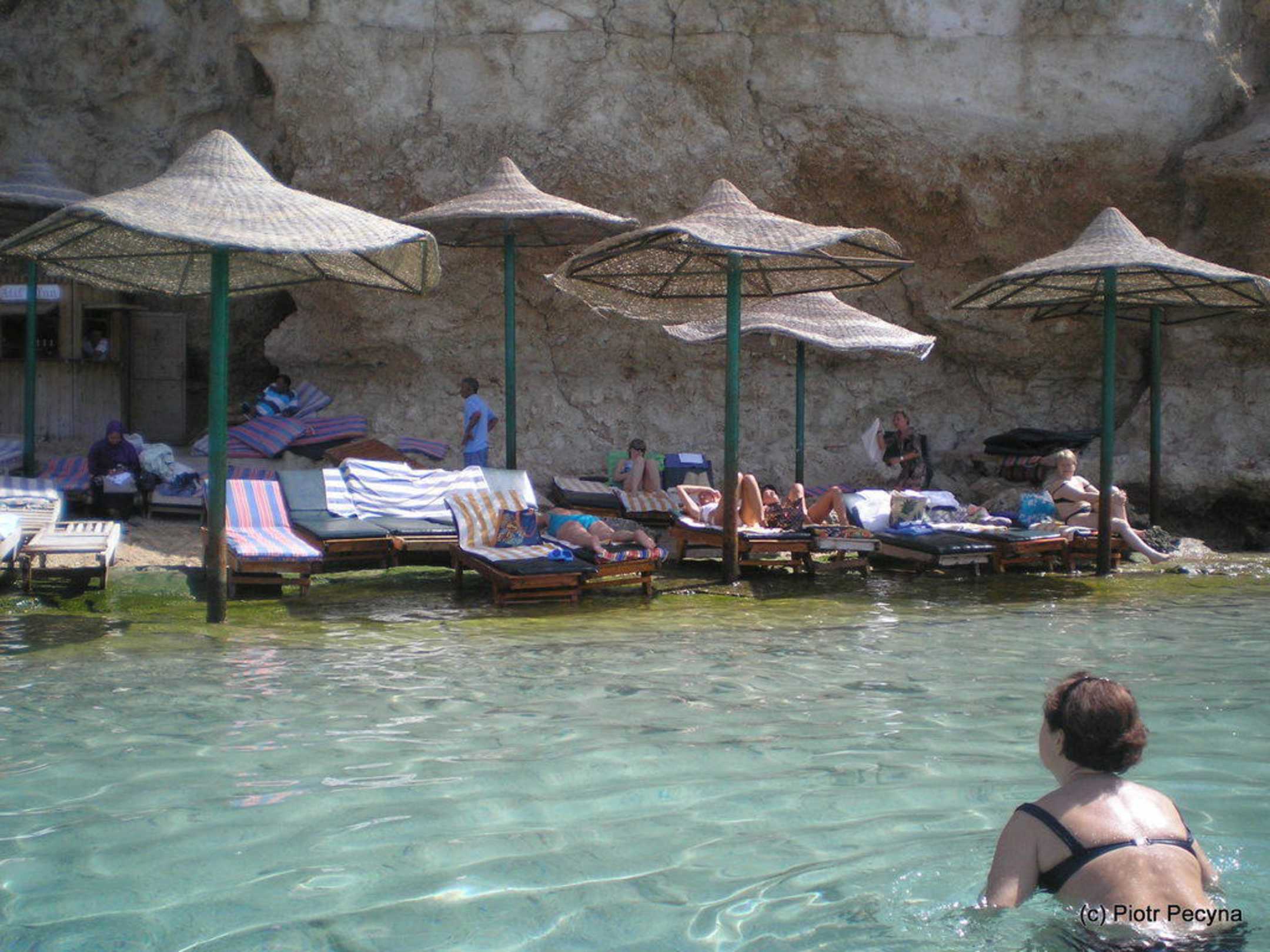 Parasole hotelu Dive Inn na darmowej plaży
