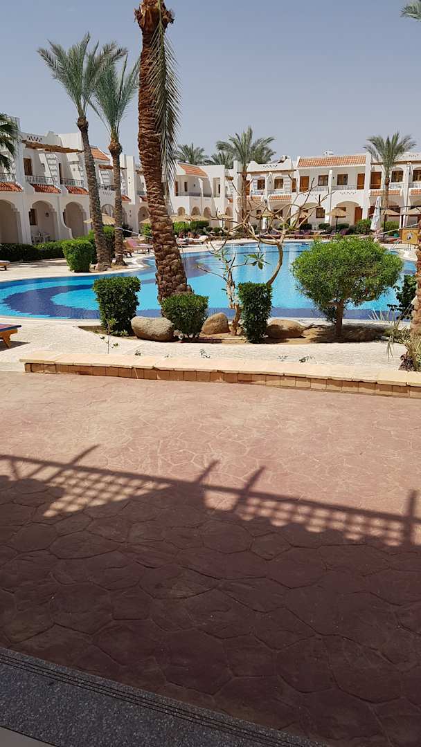 Blick aus dem Zimmer mit Zugang zum Pool.