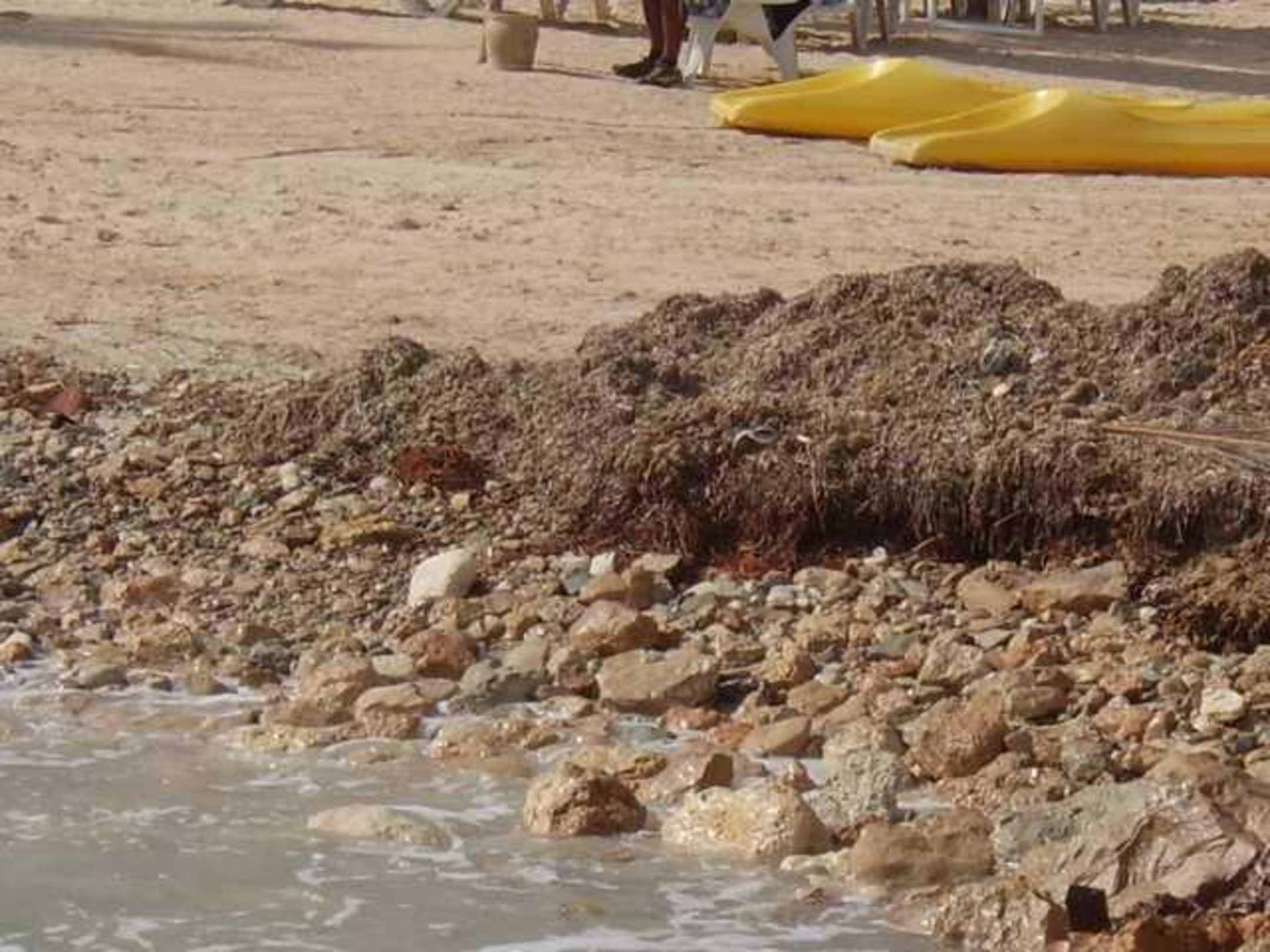 Hotelstrand mit Dreckhaufen