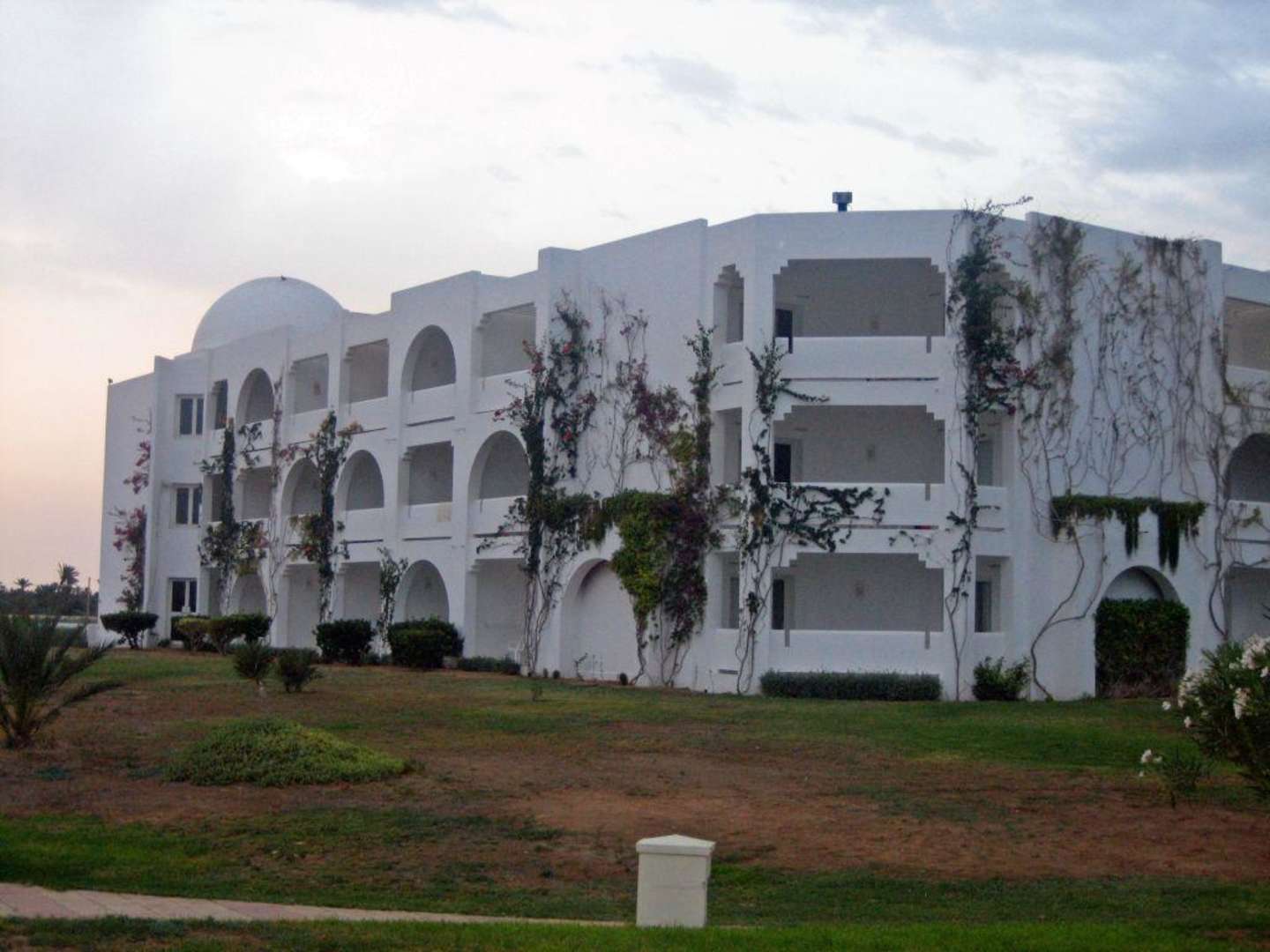 Seitenflügel Djerba PlazaIn diesem Stil waren alle Zimmer im Djerba Plaza. Wer ein Zimmer mit Meerblick haben will sollte auf jeden Fall absichern, dass er dann kein Zimmer im Erdgeschoß bekommt, da man das Meer nur sehen kann, wenn man sich auf einen Stuhl stellt.