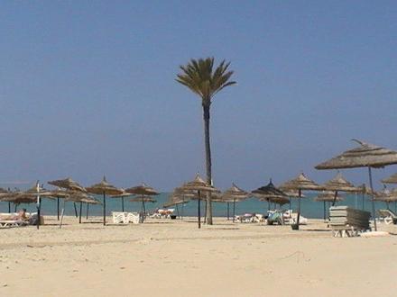 Die einzige Palme am Sandstrand von Djerba