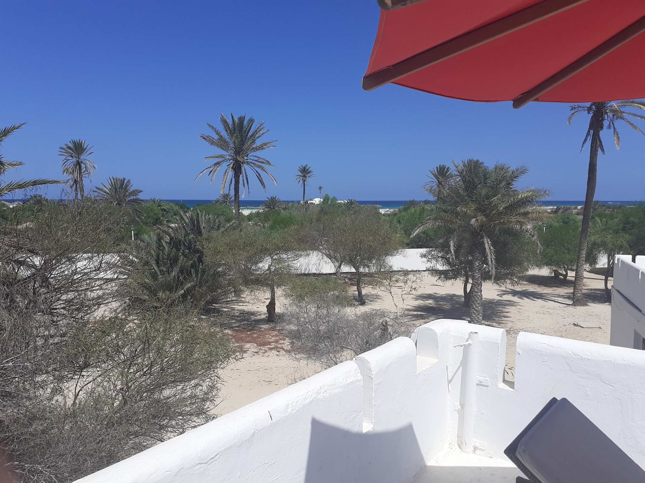 Blick von der Poolterrasse zum Strand
