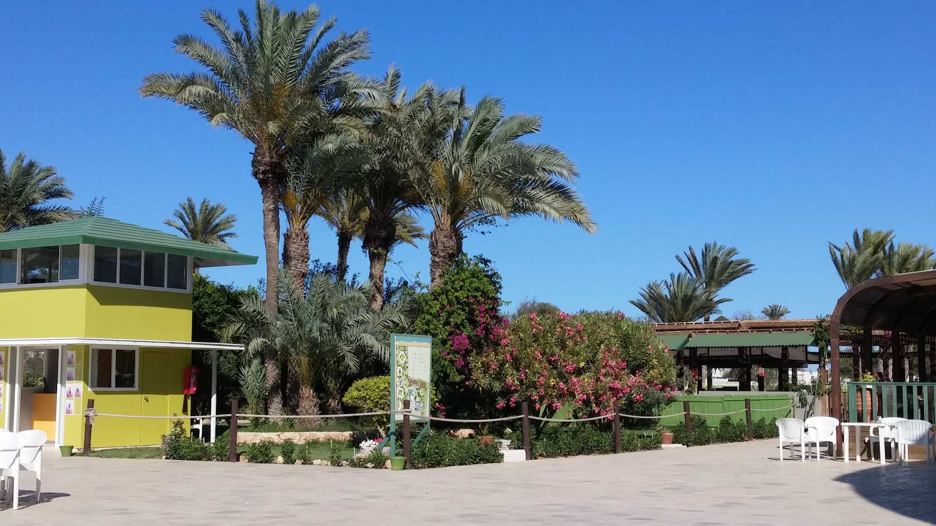 Blick Richtung Restaurant Außenbereich...links das Animationshaus...