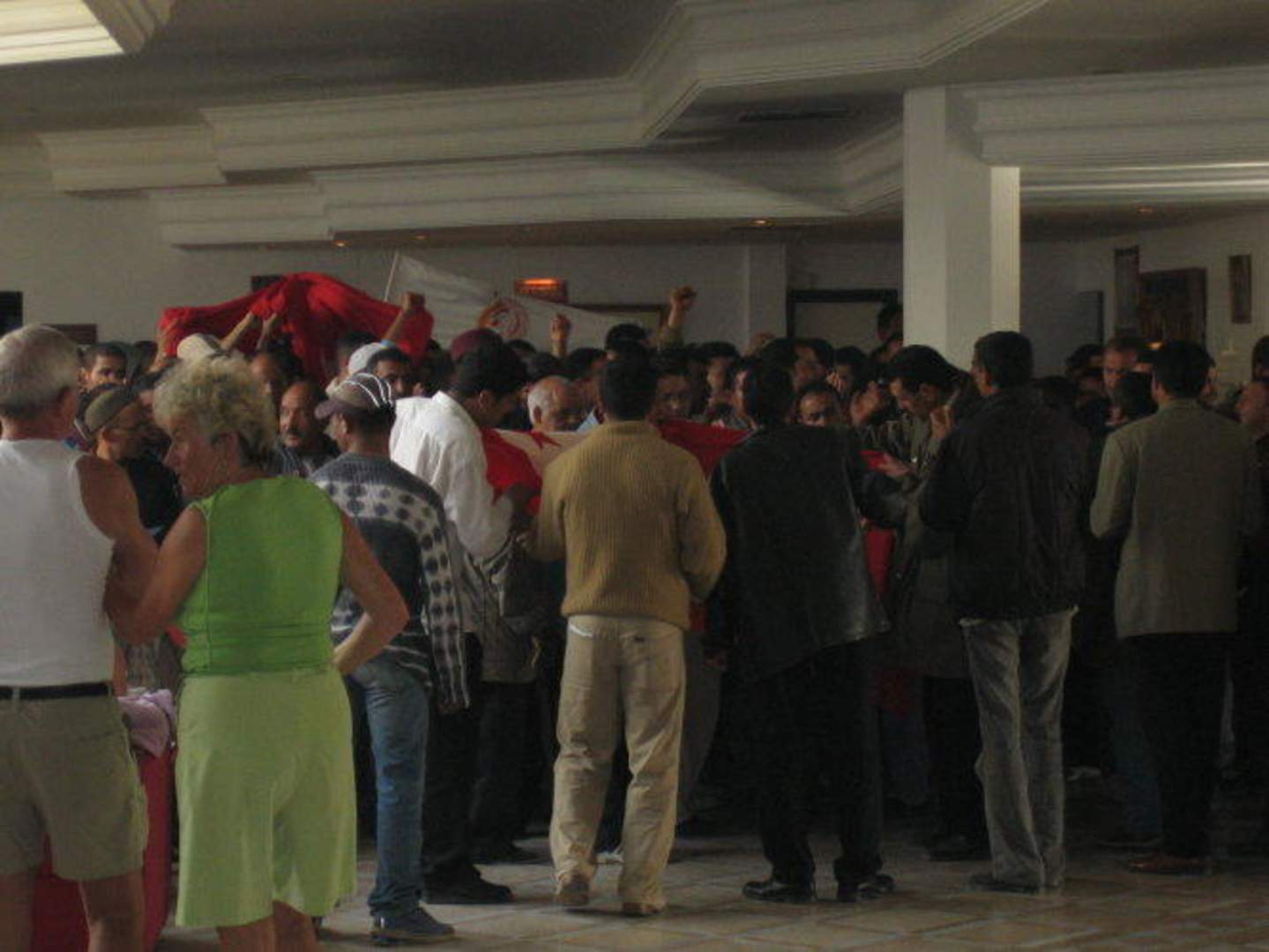 Hotelempfangshalle mit demonstrierendem und streikendem Hotelpersonal! Nach diesem Tag haben wir endgültig das Hotel gewechselt!