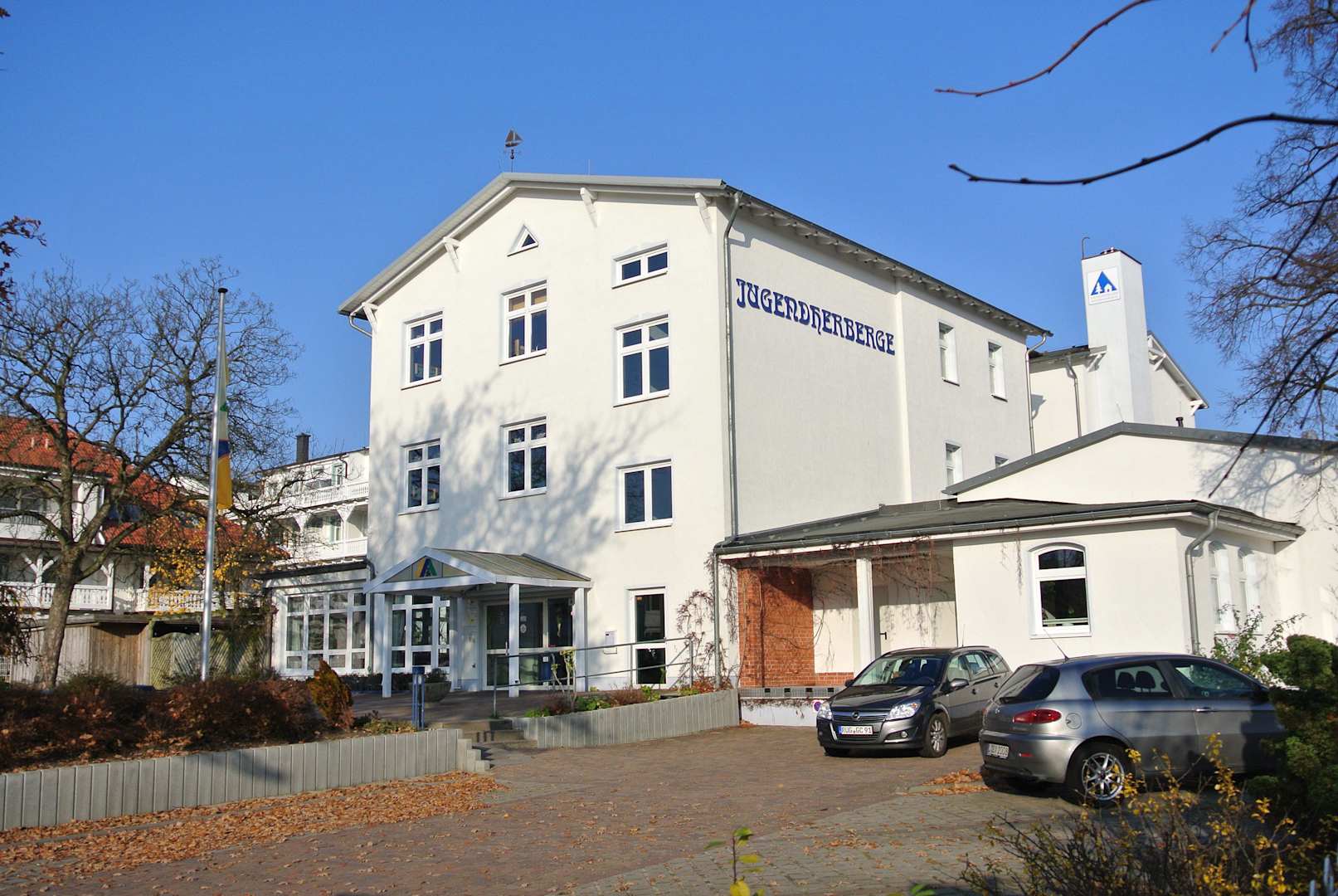 AußenansichtBlick auf die Jugendherberge im Zentrum von Binz auf Rügen. Sie liegt direkt an der sehr schönen Uferpromenade.