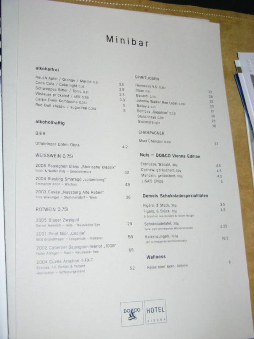 DO & CO Hotel in Wien: Getränkepreise (Minibar)