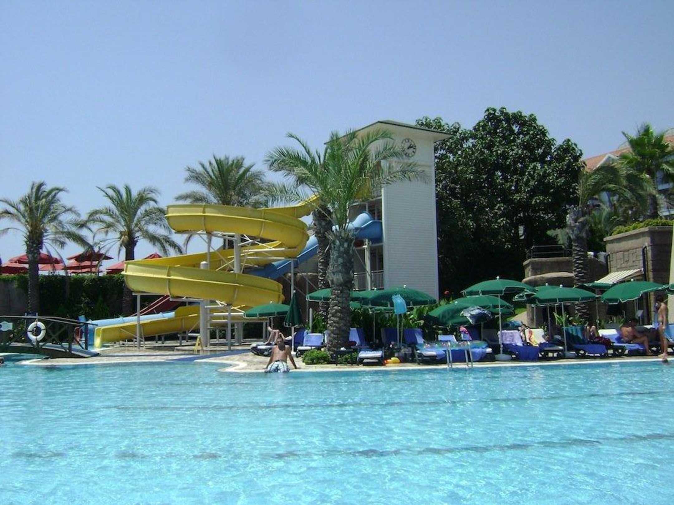Untere Ebene der Poolanlage mit Rutschturm Dobedan Beach Resort Comfort