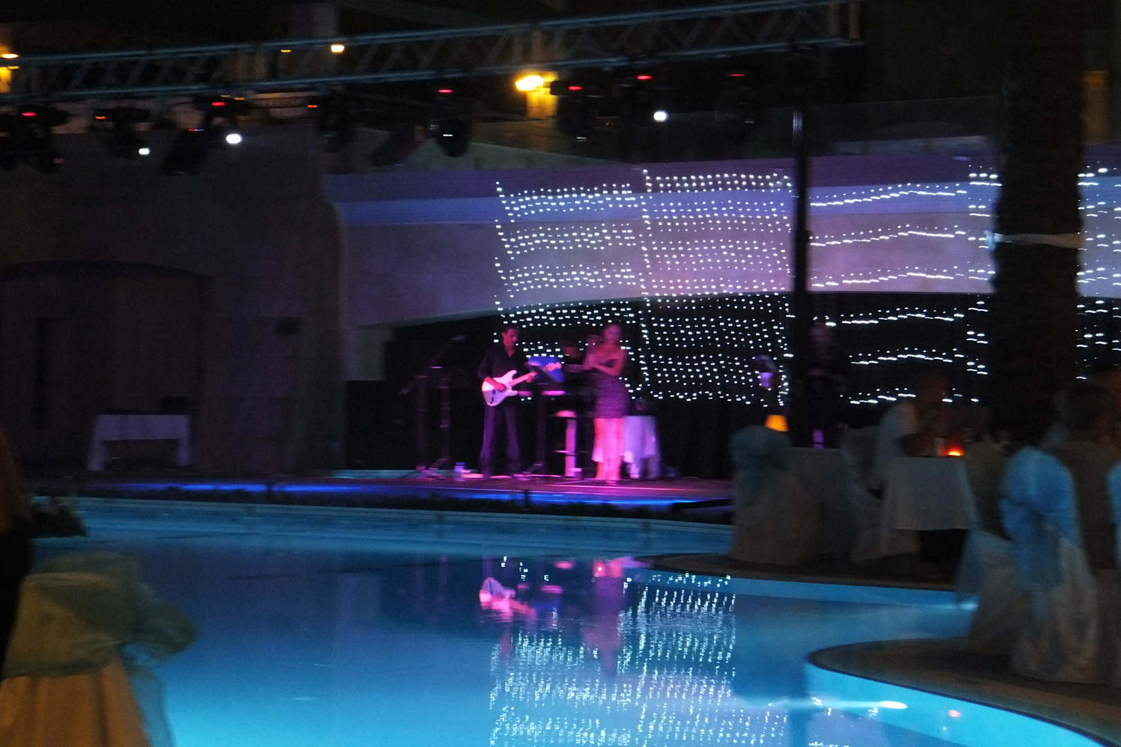 Bühne mit LivemusikBühne mitten im Pool mit Livemusik am Galaabend.