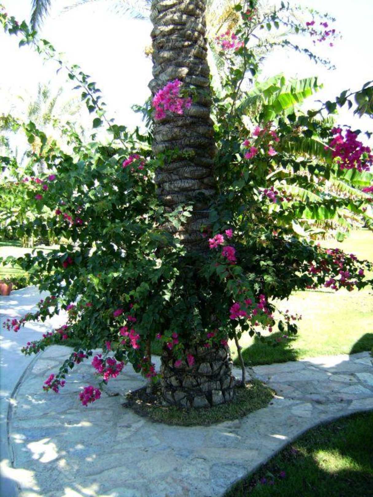 Boungaville umrankt Palme