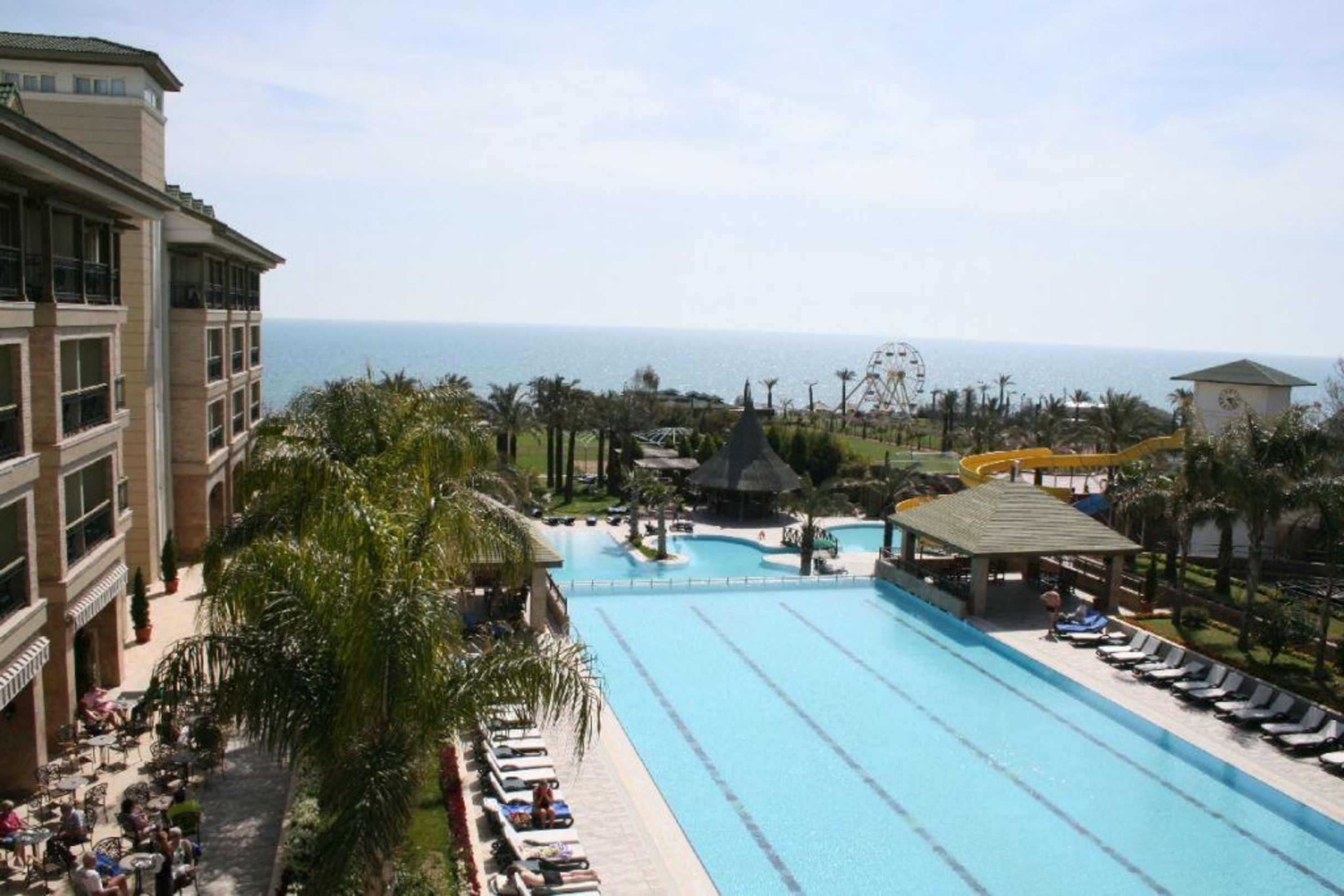 Blick vom Hotel über die Poolanlage