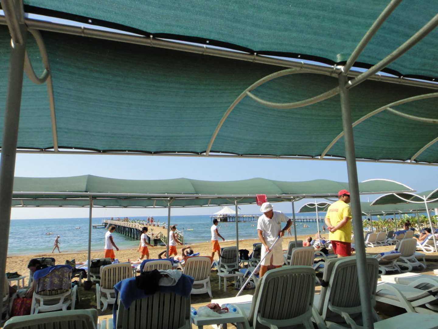 Weißes Shirt, Weiße Kappe: Hausmeister am Strand