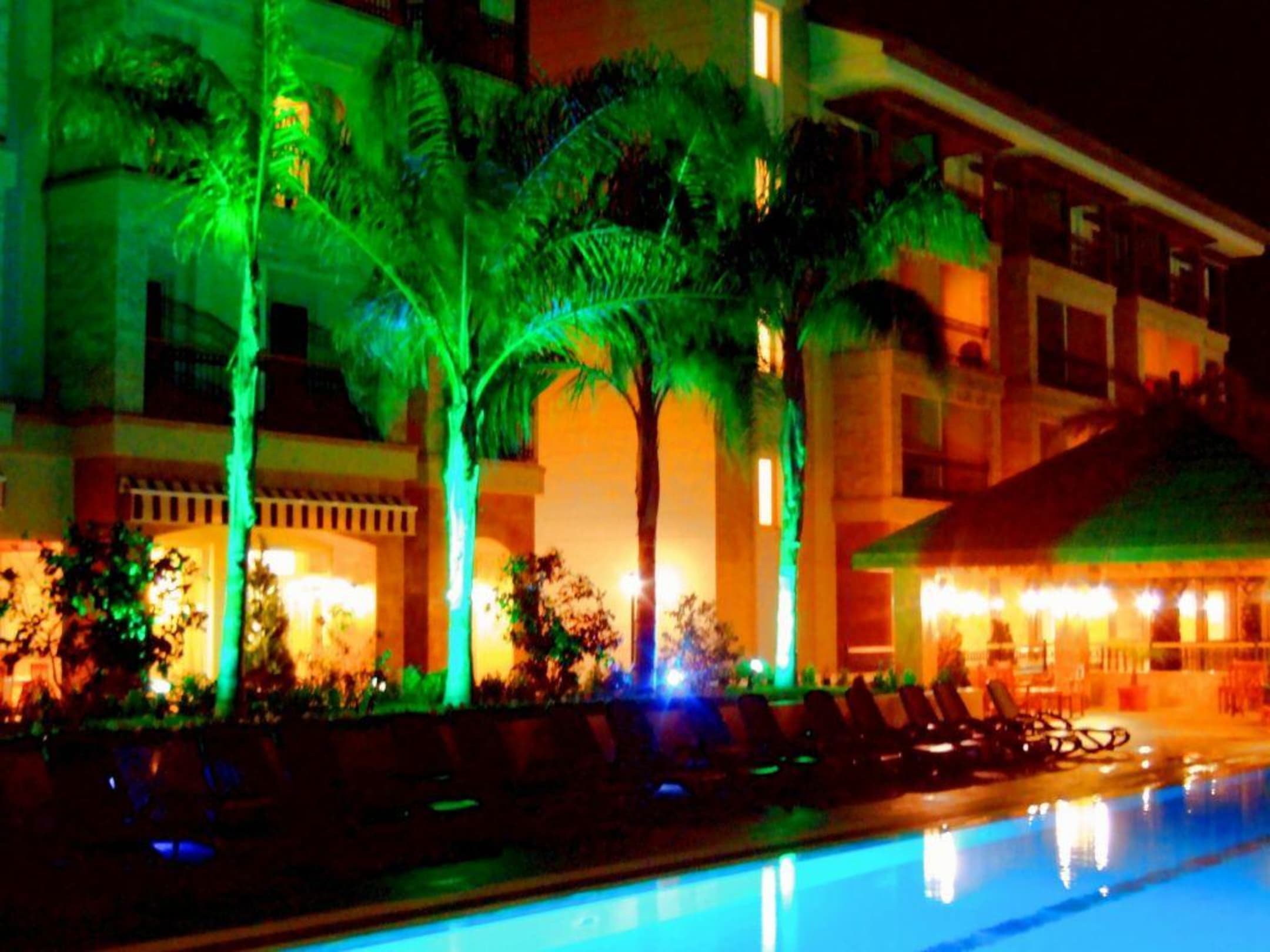 Außen am Pool bei NachtNeue Außenbeleuchtung Amara