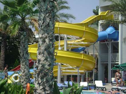 Blick aus dem Pool zur Rutschanlage