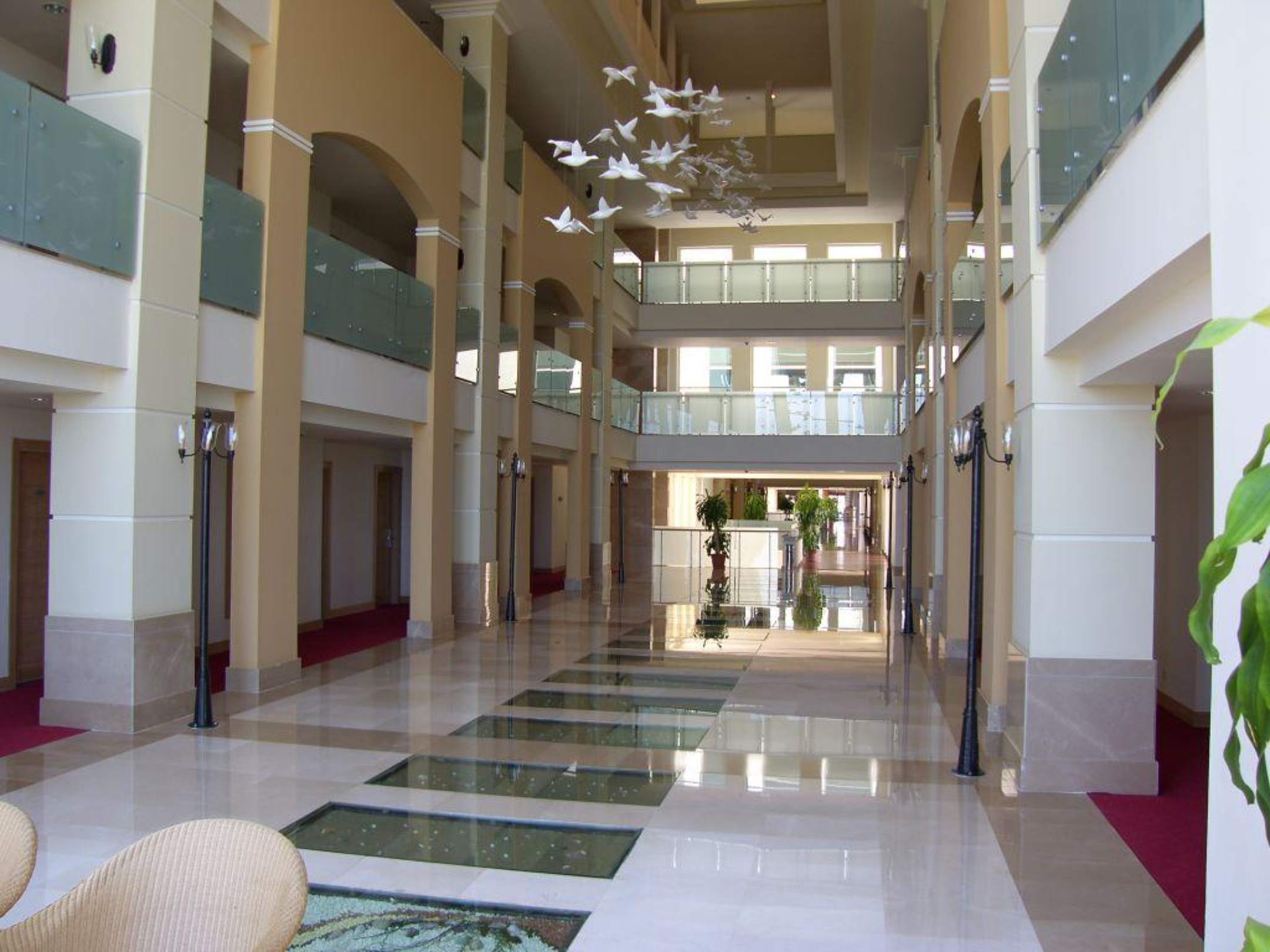 Marmor-Hotelflur mit Porzellantauben