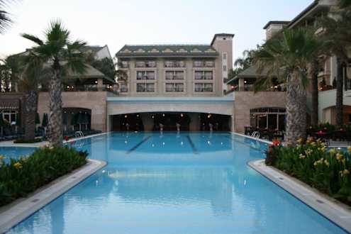 Der Pool mit Hotel