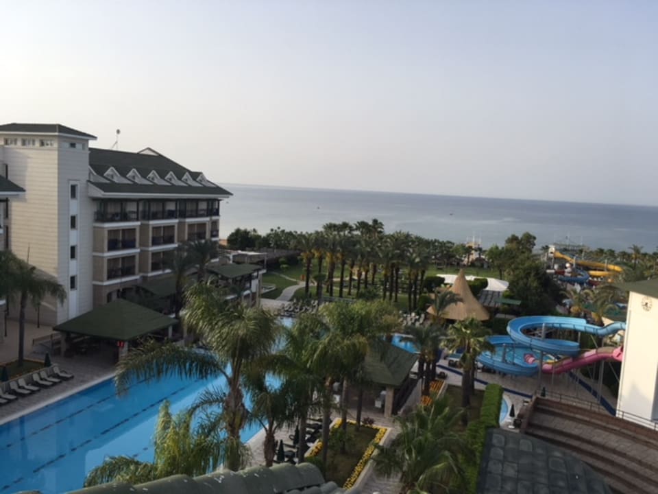 AußenansichtVom Zimmer ein Blick auf den oberen Ruhepool und die darunter liegende Poolanlage für Aktivitäten und Kinder.