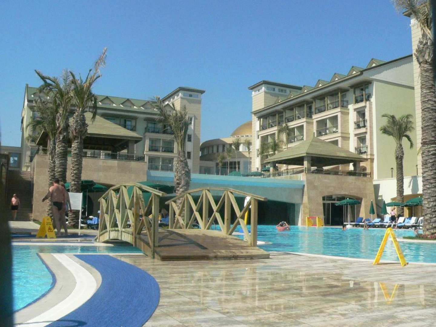 15 Uhr Blick vom unteren Pool zum Wasserfall (zwischen den beiden Freisitzen. Hinter dem Wasserfall ist die Bar " Blue Cascade" ). Rechts neben dem Wasserfall Eingang zur Bar " The Zone" .