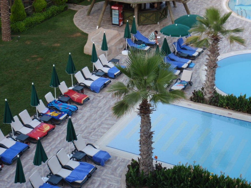 Reservierte Liegen, Ausblick aus Zimmer, 7.00 Uhr