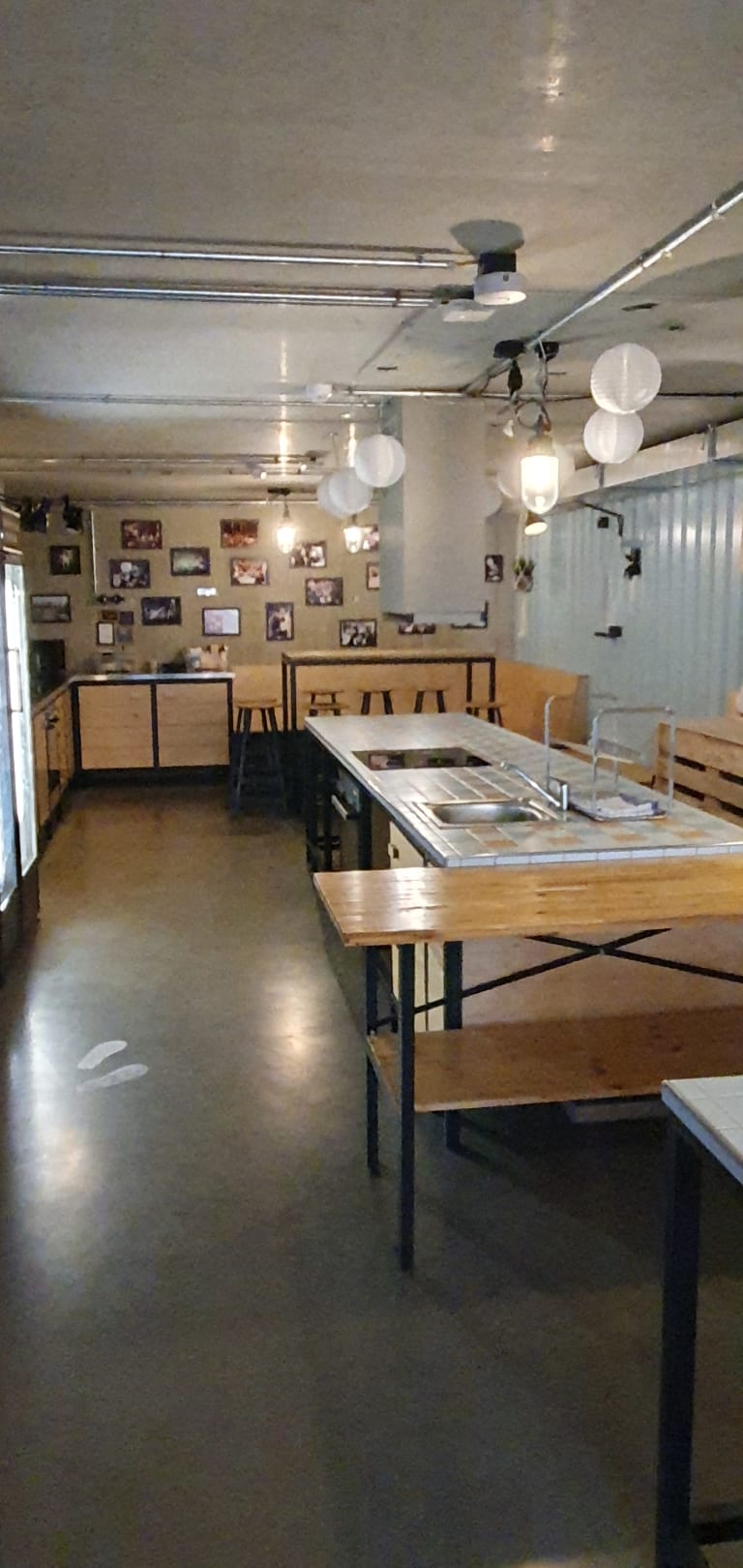 Gemeinschaftsküche. Hier hat man die Möglichkeit selber zu kochen.