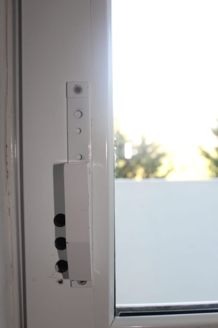 Okno balkonoweKlamka w oknie balkonowym.
