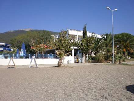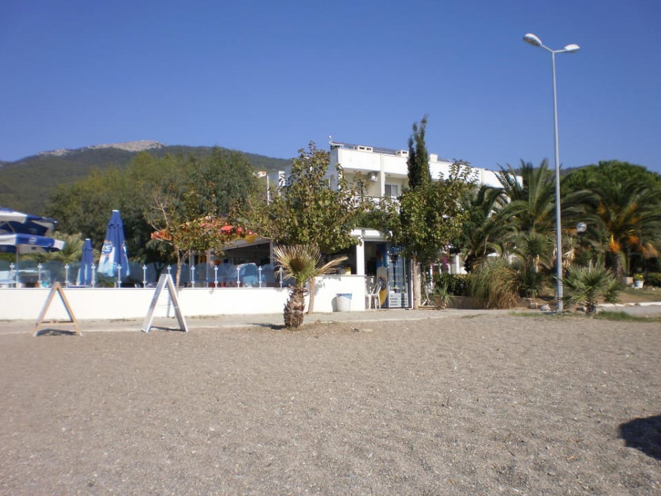 Blick vom Strand zur PoolbarDie Anlage ist unmittelbar am Strand, Getränke dürfen von der Poolbar zum Strand mitgenommen werden.