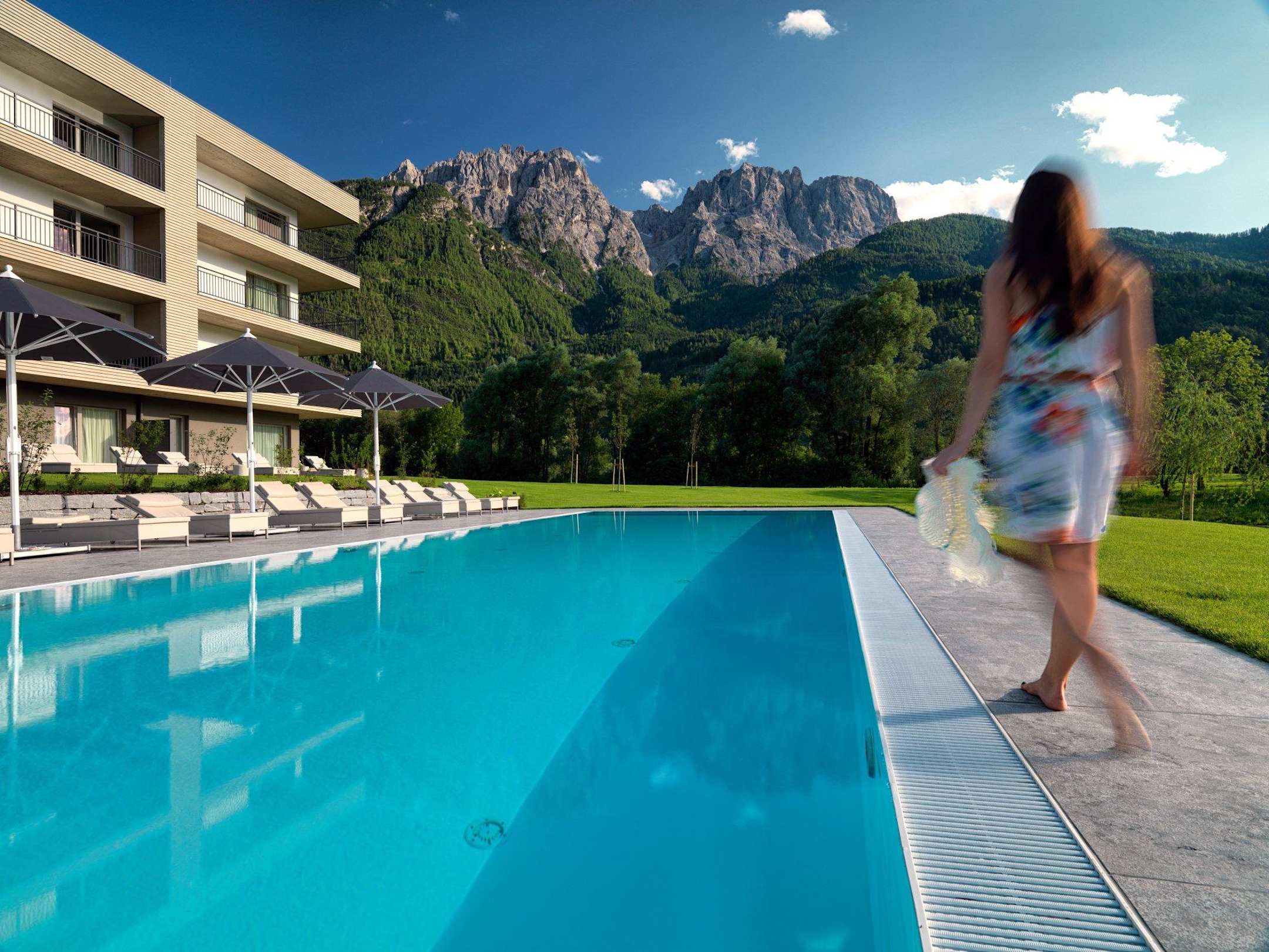 Der beheizte Pool am Fuße der Lienzer Dolomiten