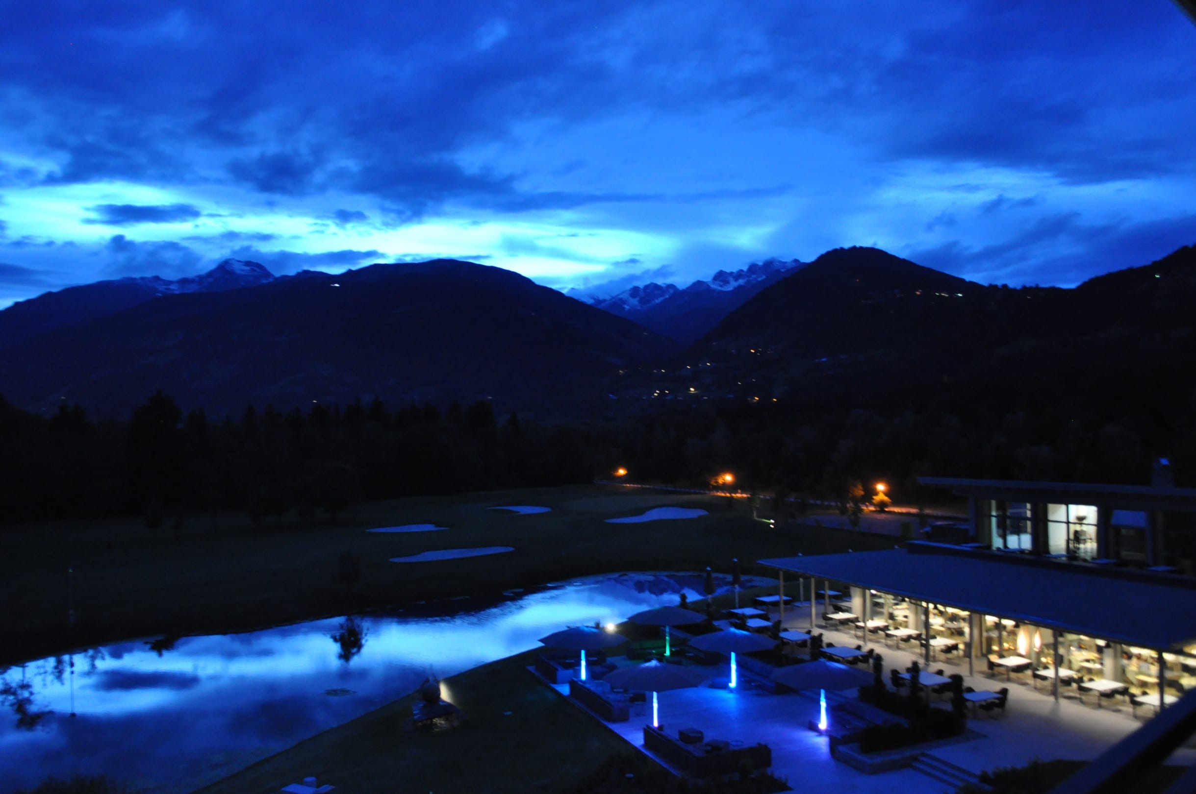 Pool und Golfplatz bei Nacht