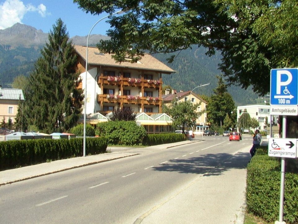 Dolomitenhotel mit StraßenkreuzungDolomitenhotel Ansicht von hinten seitlich. In der zweiten Etage lings war mein Zimmer.