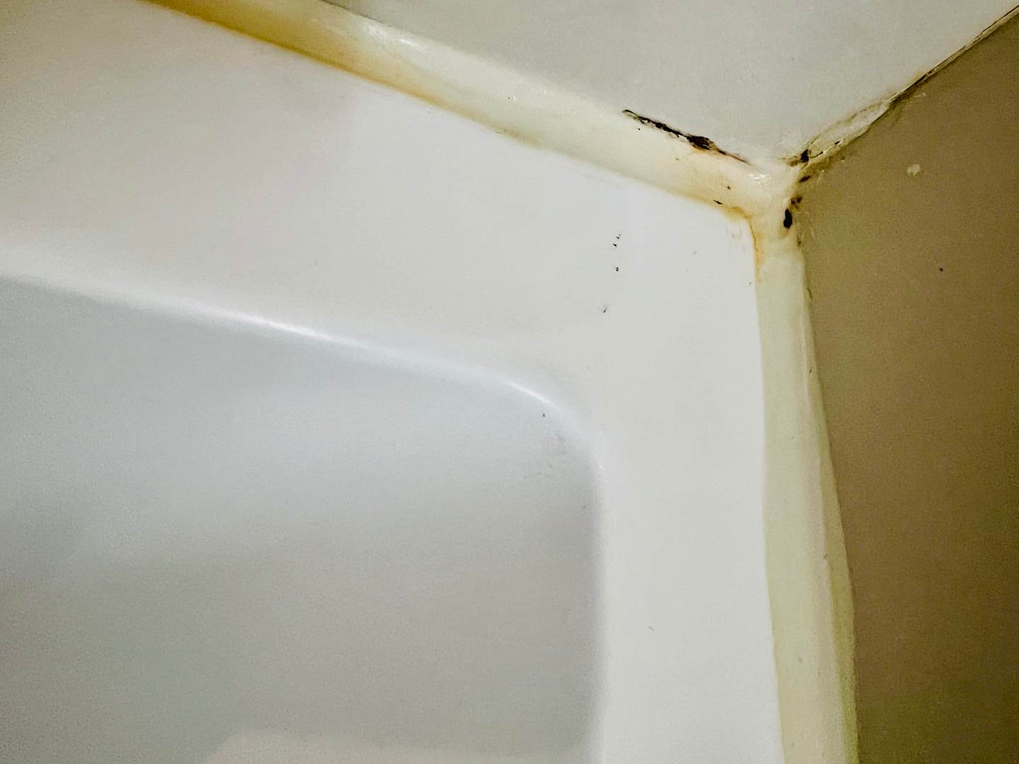 Leider nicht ganz gereinigte Badewannenfugen