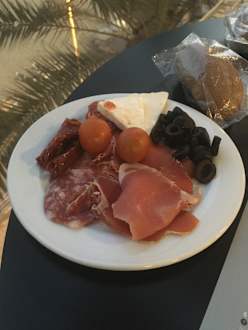 Auch frisch geschnittener Schinken gab es an einem Tag, sehr lecker.